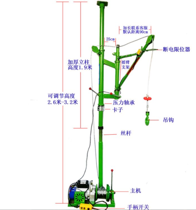 單立柱吊運(yùn)機(jī)的優(yōu)點(diǎn)是上頂天下頂?shù)兀惭b簡(jiǎn)單,不用打孔,吊臂可360度旋轉(zhuǎn),支撐桿高度可以調(diào)節(jié),電機(jī)帶離合可快速下放,一秒到底,可在室內(nèi)、樓道、陽(yáng)臺(tái)等上下距離不太高的場(chǎng)合吊裝沙子、水泥、門窗、護(hù)欄等,簡(jiǎn)單好用,攜帶方便。